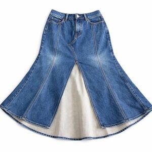 Express Conscious Edit Flared Denim Midi Skirt Panel Seam A-Line Size 4