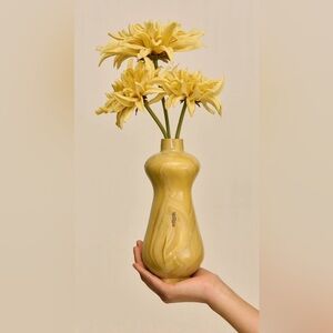 A sculptural mini bag in smooth leather with a curved golden top handle.