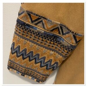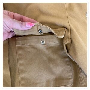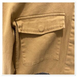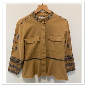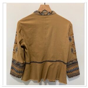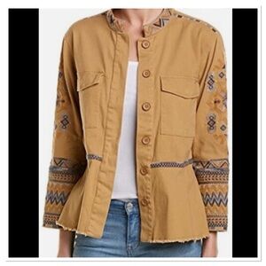 Khaki Hidden Button Up Front Long Sleeve Peplum Multicolor Embroidered Button Front Pockets Military Style Amika Jacket By Johnny Was Size S