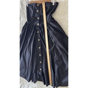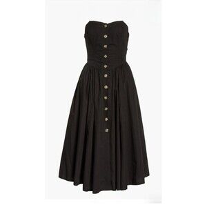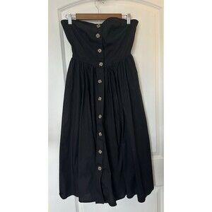Free People Black Midi Dress Button Front Sweetheart Bodice Tie Back Fit & Flare