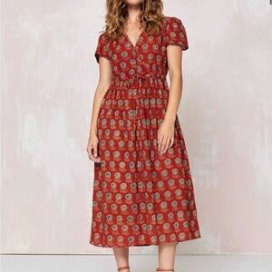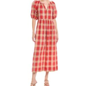 Boden Linen Gingham Smocked Midi Dress Puff Sleeve Colorful cottage core Size 12