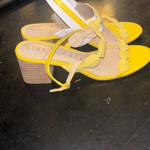 NWOT Sole Society Yellow Scalloped Strap Block Heel Sandals Size 9