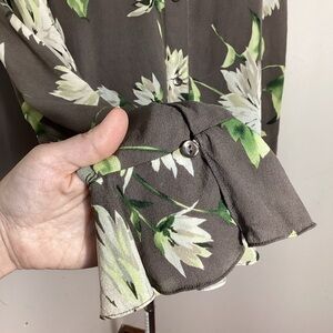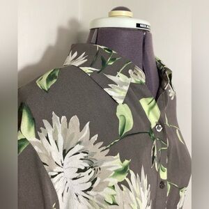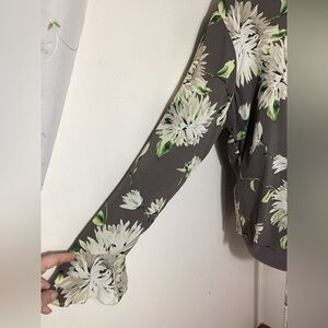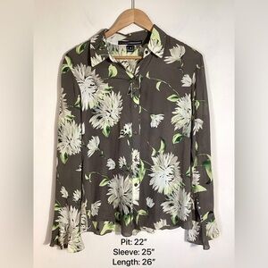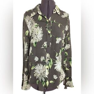 Linda Allard Ellen Tracy Floral Silk Button Up Blouse Top