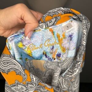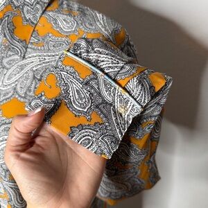 Robert Graham Silk Blend Paisley Button Down Shirt Mustard Black White Size L