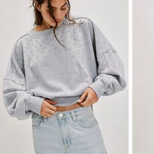 Add subtle embellishment to every outfit with this effortlessly cool sweatshirt, featured in a soft cotton-blend and slightly oversized fit with studded detailing and drop-shoulder sleeves.