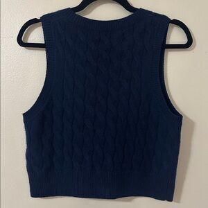 J. Crew Womens Navy Cashmere Cropped V-Neck Cable Knit Sweater Vest Sz Small