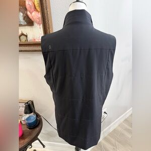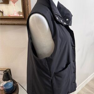 Chic black vest by Figs. Ideal for layering. Features button and zipper closure.