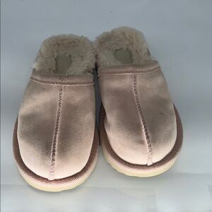 Soft light tan slippers with cozy lining. Ideal for relaxation.