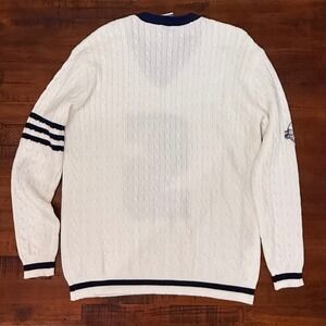 Limited edition Chicago White Sox cable knit varsity v-neck sweater, produced as a rare Blue Moon promotional item