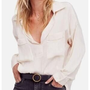 Free People Size XS Runs BIG Starry Dreams Pullover Blouse Ivory Oversized