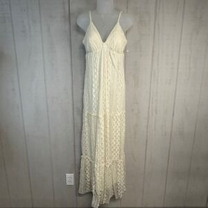 HeartSoul Women Lace Babydoll Maxi Dress Size L Tiered Ivory Summer Event NWT