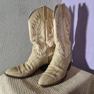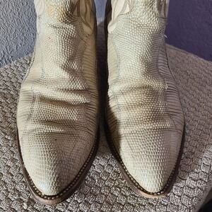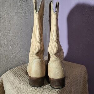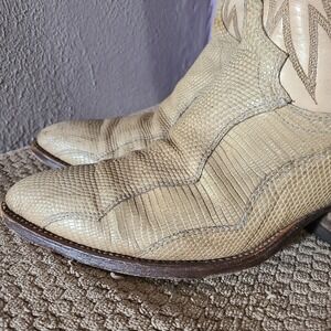 Vtg Dan Post Mens Cream Tan Exotic Lizard Leather Cowboy Boots Pointed Toe 9.5D