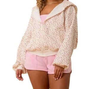 Embrace style with this elegant cream jacket featuring a delicate floral pattern. Perfect for adding a touch of sophistication to any outfit.