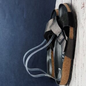 Birkenstock Siena Exquisite Suede Leather Sandals Black Metallic Women's Size 10