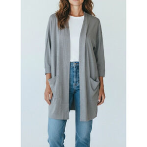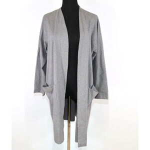 A6 NWoT Auth EILEEN FISHER Gray Cotton Open Front Pockets Sweater Cardigan Sz L