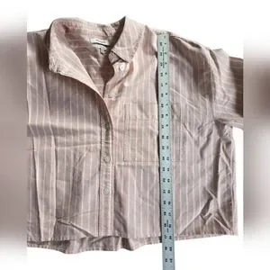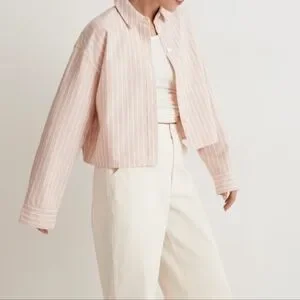 Madewell Signature Oxford Pink Striped Cropped Button-Up Shirt Medium