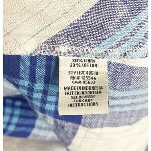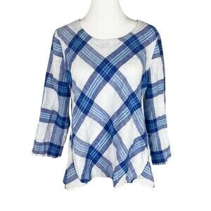 Habitat Clothes to Live In Blue White Plaid Linen Cotton Tunic Top Size XS