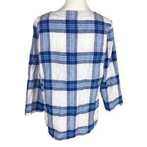 Habitat tunic top, linen cotton tunic, plaid tunic top, blue white plaid top, women’s XS tunic, relaxed fit top, casual everyday blouse, minimalist