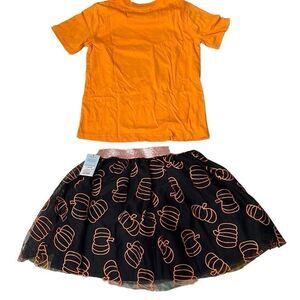 NWT Zoe + Liv Cat & Jack Kids' Orange Black Pumpkin Print Mesh Skirt Set Small H