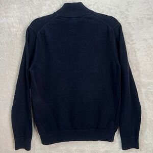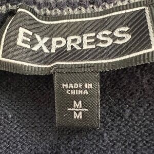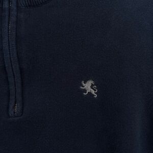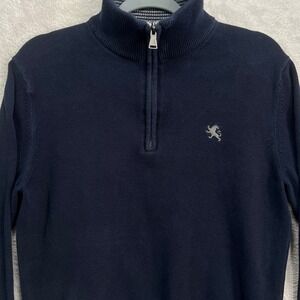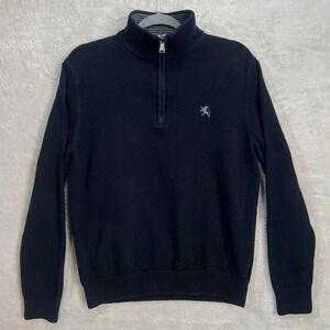 Express Mens M Navy Quarter Zip Pullover Sweater 100% Cotton Knit Lion Logo