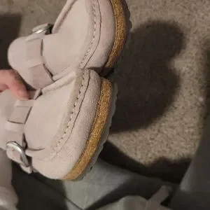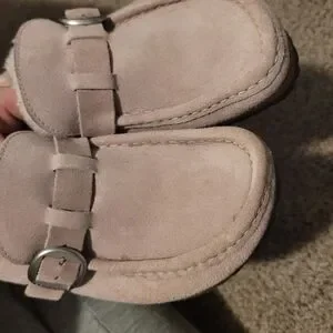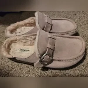 stylish and comfortable slip-on sandal designed for women. Made with leather and featuring arch support and adjustable straps, these sandals provide a secure and supportive fit. The pink color adds a fun and trendy touch to the classic design of the Birkenstock Buckley clogs, making them a versatile option for everyday wear