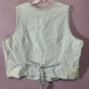 Vtg 90s Karen Scott II Womens Vest Blue Denim Butterfly Floral Embroidery 2X