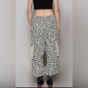 POL Leopard Print Wide Leg Pants with Cream Accents Size L