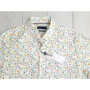 Quieti Performance Stretch Men's Med Tropical Island Vacation Surf Button Shirt