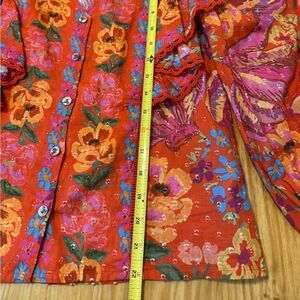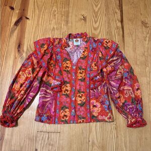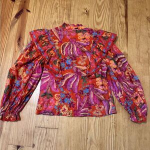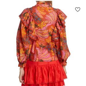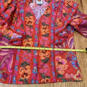 Farm Rio Red Spring Bananas Ruffle Blouse Women’s SIZE XS Red Floral
