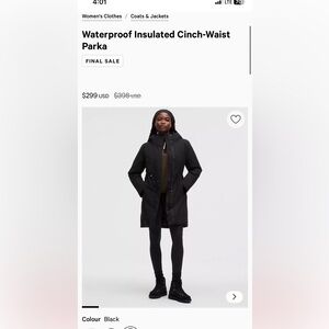 Lululemon Waterproof Insulated Cinch Waist Parka