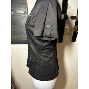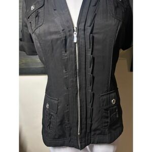 WHBM Black Short Sleeve Zip Up Ruffle Utility Jacket Blouse 4