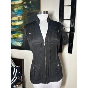 WHITE HOUSE BLACK MARKET Black Short Sleeve Zip Utility Jacket $118 MSRP