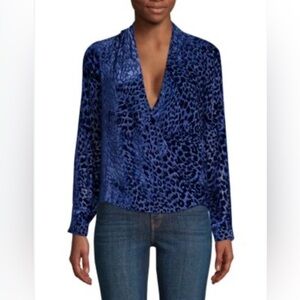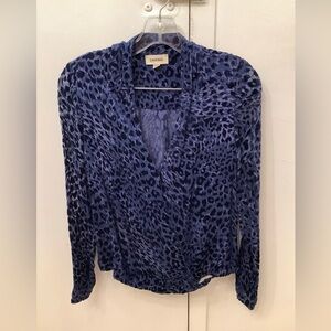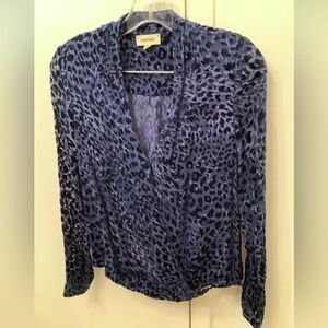 L'Agence Lydia Navy Drape Leopard Velvet Burnout Wrap Blouse Women’s Size XS/T