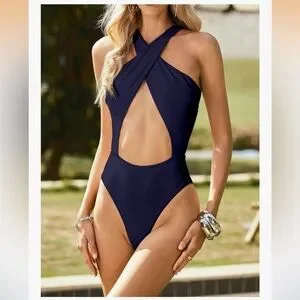 HYPERFIRE Sexy Halter Criss Cross Cut Out One Piece Bathing Suit.
