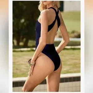Dive into style with this elegant navy swimsuit. Perfect for a chic beach look.