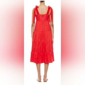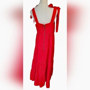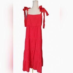 Chic sleeveless dress with tiered design. Features bold red color and bow details on shoulders. never worn