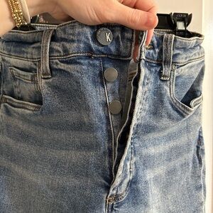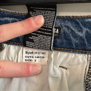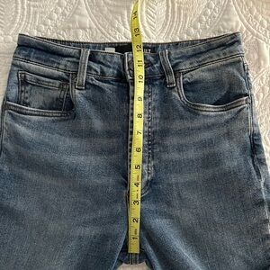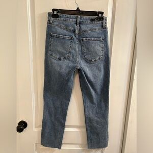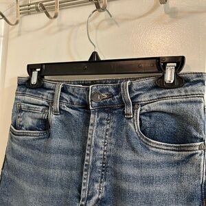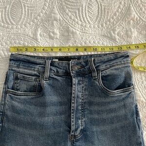 Like new size 2 high rise straight ankle jeans. No stains, holes, flaws, or signs of wear other than the manufacturers distressing. Inseam measures 26”. Other measurements shown above.