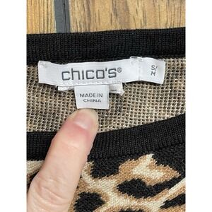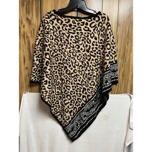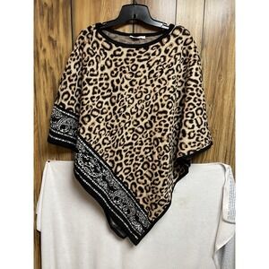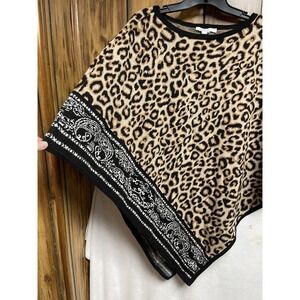 Chico's Knit Poncho Sweater Size S/M Brown Leopard Animal Print Triangle Cape