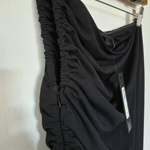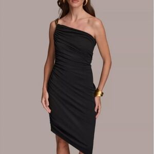 Donna Karan New York Women's Black Asymmetrical Lined Ruched Midi Dress Size 4