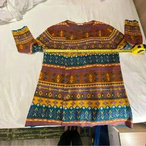 Introducing an Andree by UNIT open cardigan that exudes a desert bohemian chic vibe. This multicolored cardigan features a geometric pattern, long sleeves, and an open front neckline. It is made of a comfortable knit fabric and has a relaxed fit, making it perfect for all seasons and occasions such as travel, weddings, parties, casual outings, and business meetings.
