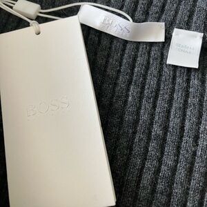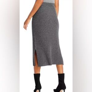 HUGO BOSS Charcoal Grey Ribbed Wool and Cashmere Blend MIDI Skirt Size M NWT
