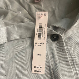 Get cozy in this brand new with tags Victoria's Secret Flannel Nightshirt. Perfect for relaxing at home, this soft, grey flannel features a subtle dot pattern and a chic chevron weave. The shirt has a full button-down front, a single breast pocket with the iconic "VS" logo embroidered on it, and roll-tab sleeves.