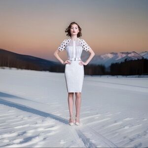 An optic white beaded sheath from Byron Lars - the master of ultra flattering, expertly structured, sensuously cut silhouettes.