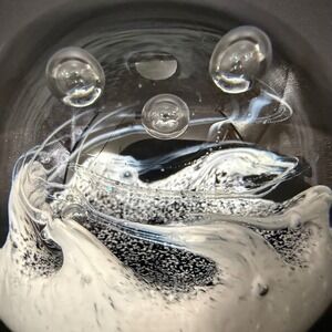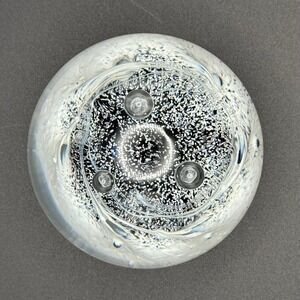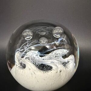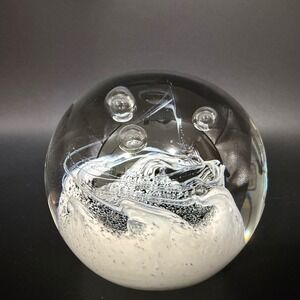Keywords: Paper Weight, Glass Sphere, Office Decor, Desk Accessory, Collectible Glass, Hand Blown, Controlled Bubble, Monochrome, Minimalist, Modernist, Sculpture, Paperweight Art, Limited Run