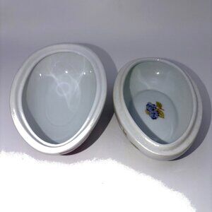 Vintage MANN Korea Country Butterfly Porcelain Egg Trinket Box Floral Design