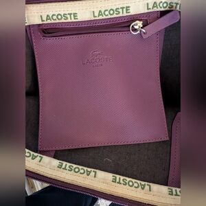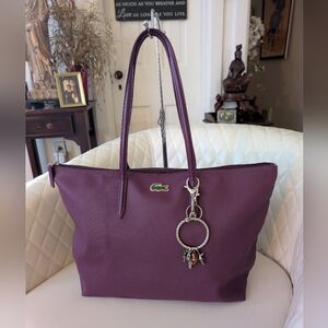 NWOT LACOSTE Plum Tote Bag for Women 19" X 12" X 6" With Bag Key Chain