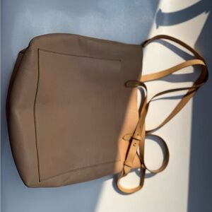 Crafted in 100% genuine leather in a beautiful blush/nude color. This iconic Madewell tote features dual top handles and an adjustable long strap for crossbody wear.