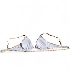 Approximate measurements shown in the photos: the bikini top measures about 30 inches across when laid flat and fully extended from strap to strap, and the bottoms measure about 16 inches across when laid flat. The smooth, stretchy fabric makes it comfortable for swimming, beach days, or relaxing poolside. From a smoke and pet-free home. Thanks for looking.