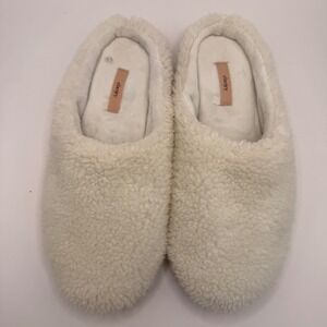 Eberjey Sherpa Slipper Mules Cream Fuzzy Teddy House Shoes Womens Size S/M