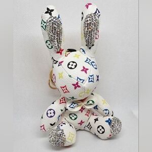 MURAKAMI PRINT LEATHER BUNNY. 6IN TALL MULTICOLOR WITH BLING EARS AND FEET